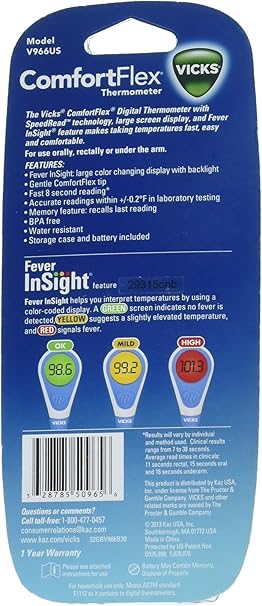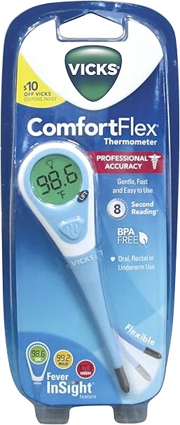 Vicks comfortflex digital thermometer 1 ea digital thermometer for kids or adults for rectal oral or underarm use color coded digital display indicates fever 4 6 out of 5 stars 1 675 cr1225 renata watch batteries 2pcs. Boasting professional level accuracy this digital comfortflex thermometer gives you quick information when caring for a sick kid. The vicks digital thermometer makes temperature taking easier with a large display and a fever signal feature.